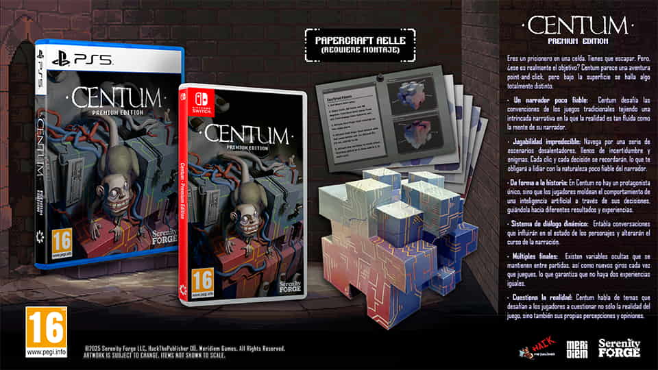 Serenity Forge y Meridiem se complacen en anunciar que la edición física Premium de Centum ya está disponible en formato físico para PlayStation 5 y Nintendo Switch. Desarrollado por Hack the Publisher y publicado digitalmente por Serenity Forge, Centum – Premium Edition es una aventura narrativa poco fiable en la que todo puede ser mentira.