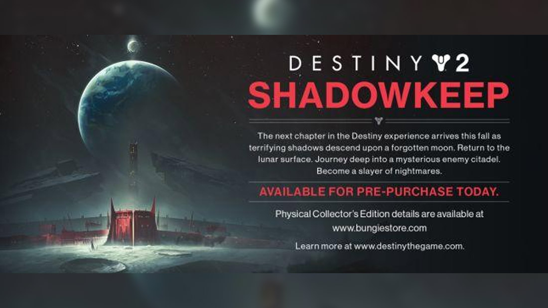 El siguiente capítulo de la experiencia Destiny llegará este otoño cuando las sombras aterradoras desciendan sobre una luna olvidada. Regresa a la superficie lunar. Viaja a lo más profundo de una misteriosa ciudadela enemiga. Conviértete en el asesino de pesadillas.