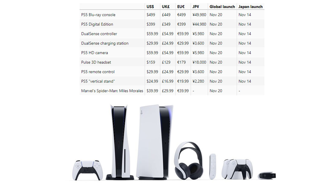 Una nueva filtración vuelve a señalar los precios casi consensuados de la mayoría de filtraciones que hemos visto hasta ahora. El insider IronManPS5 ha compartido una lista con los precios de la consola PlayStation 5, las dos versiones, y todos los accesorios conocidos hasta ahora. Además, añade una fecha de lanzamiento: El 20 de noviembre como lanzamiento mundial (14 de noviembre en Japón). Mientras que la edición normal de PlayStation 5 costaría 499 euros, la versión digital serían 399 euros (100 euros menos, contradiciendo la teoría de los 50 euros).