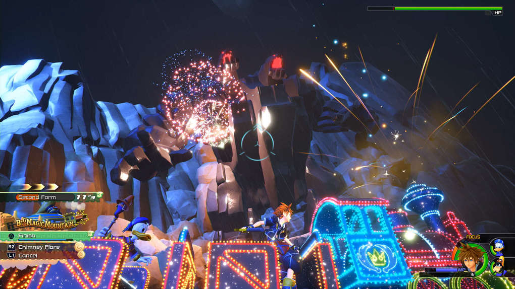 Se ha podido ver en acción a Sora acompañado de los personajes de Toy Story, incluso con artilugios de Monstruos S.A. En el mundo griego de Hércules, hemos podido ver la lucha encarnizada contra uno de los poderosos titanes.